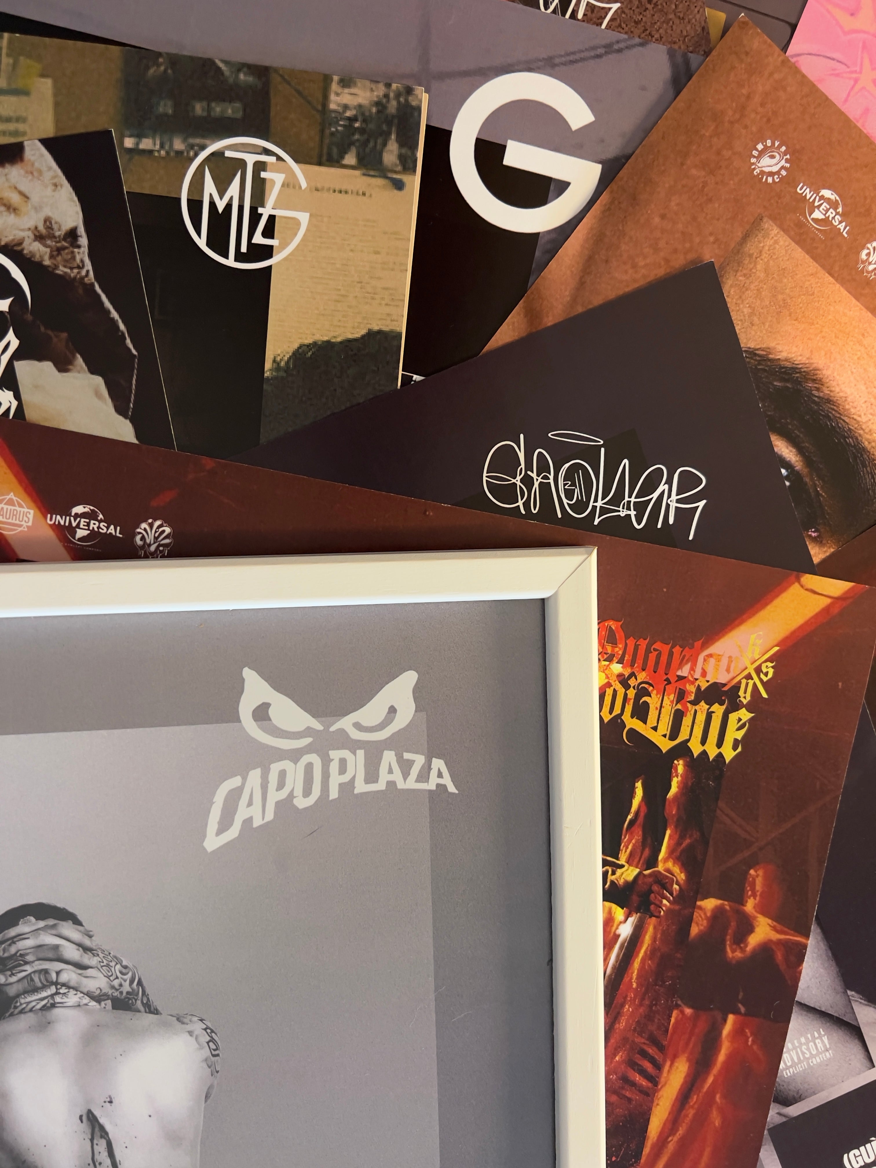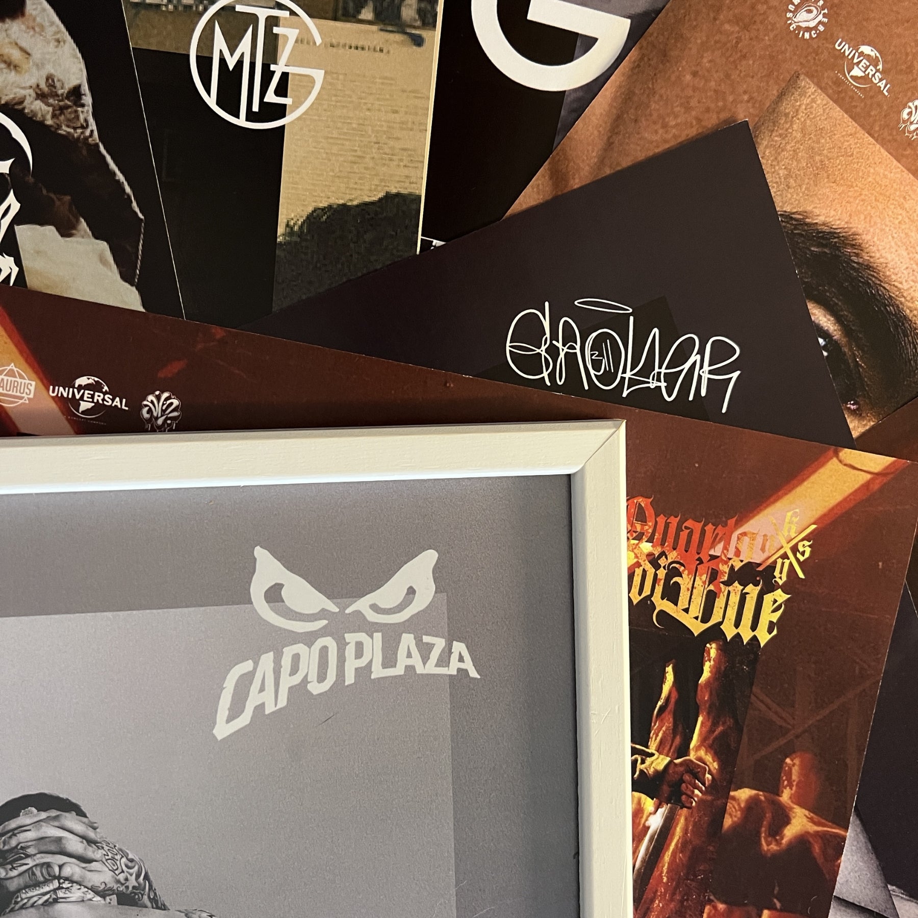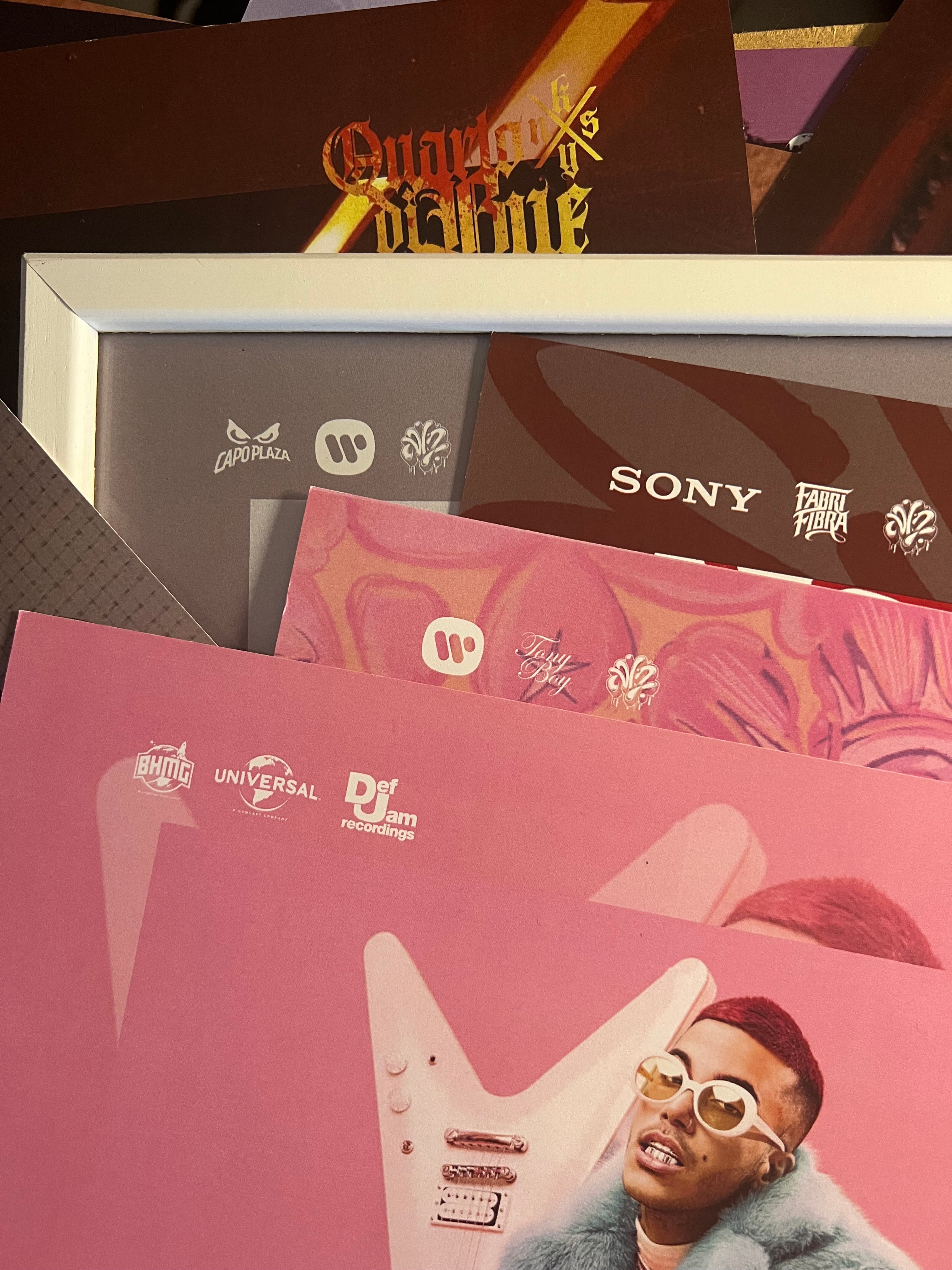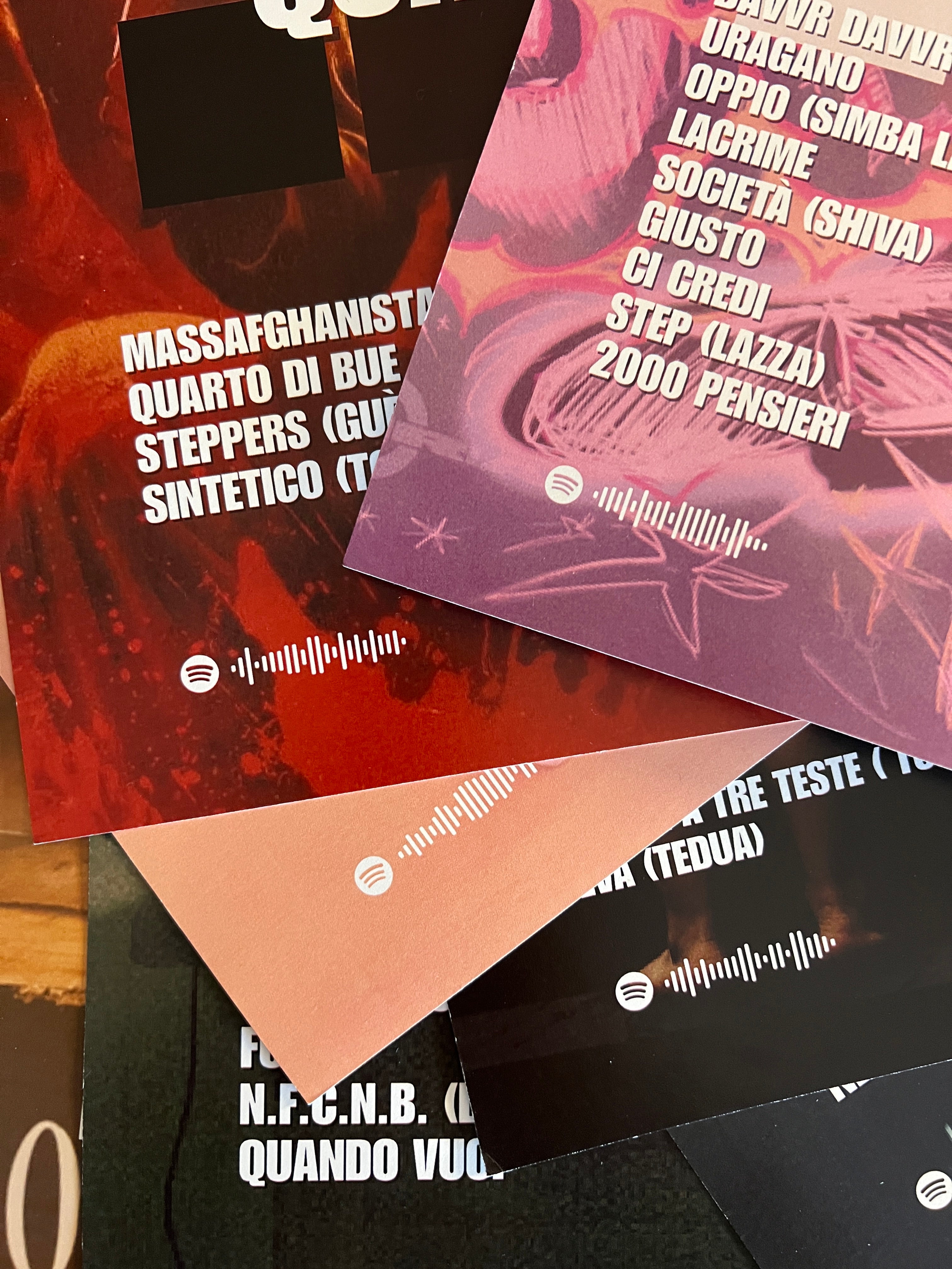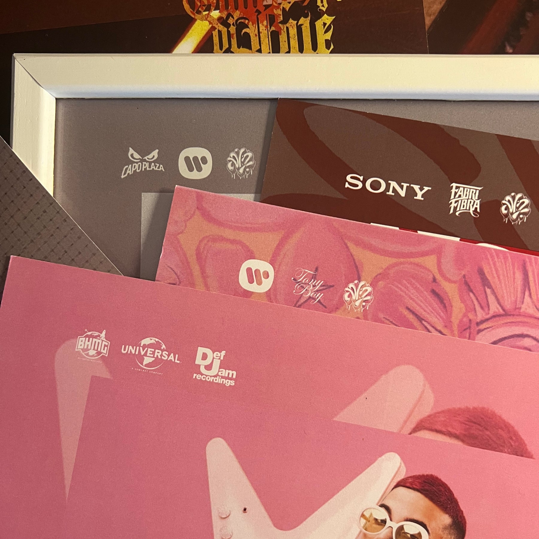 Ogni stampa in alto a sinistra presenta i loghi delle case discografiche che hanno lavorato dietro al progetto dell'album.